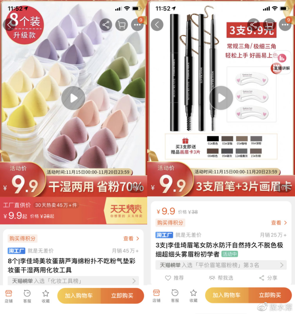图示:健美创研彩妆蛋月销45万+,极细眉笔月销25万+